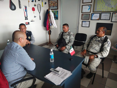 El presidente municipal Ariel Corona se reunió con el Comandante del batallón circunstancial de la fuerza de tarea conjunta México coronel de infantería Vicente Cabrera Pérez y el director de Seguridad Pública Sargento primero Martín González Maqueda.